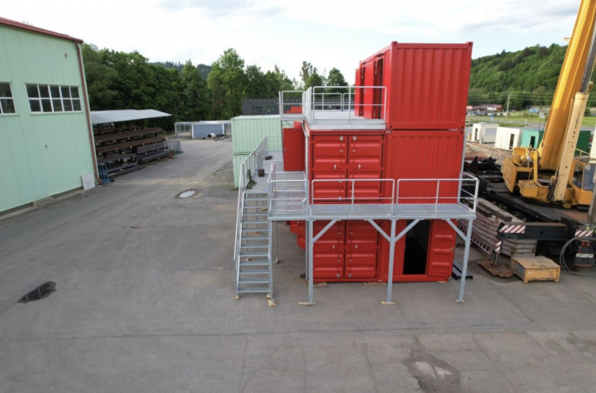 In den verwinkelten Bereichen der Containeranlage befinden sich Treppen, Räume, Türen und verschiedene Hindernisse – die Anlage simuliert ein Wohngebäude, um ein möglichst realistisches Training zu ermöglichen.